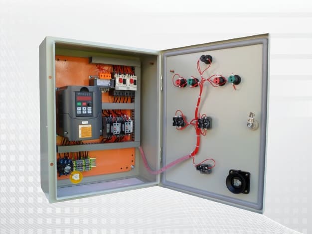 It is an electrical control panel that houses a Variable Frequency Drive (VFD), which is used to control the speed and torque of electric motors ...